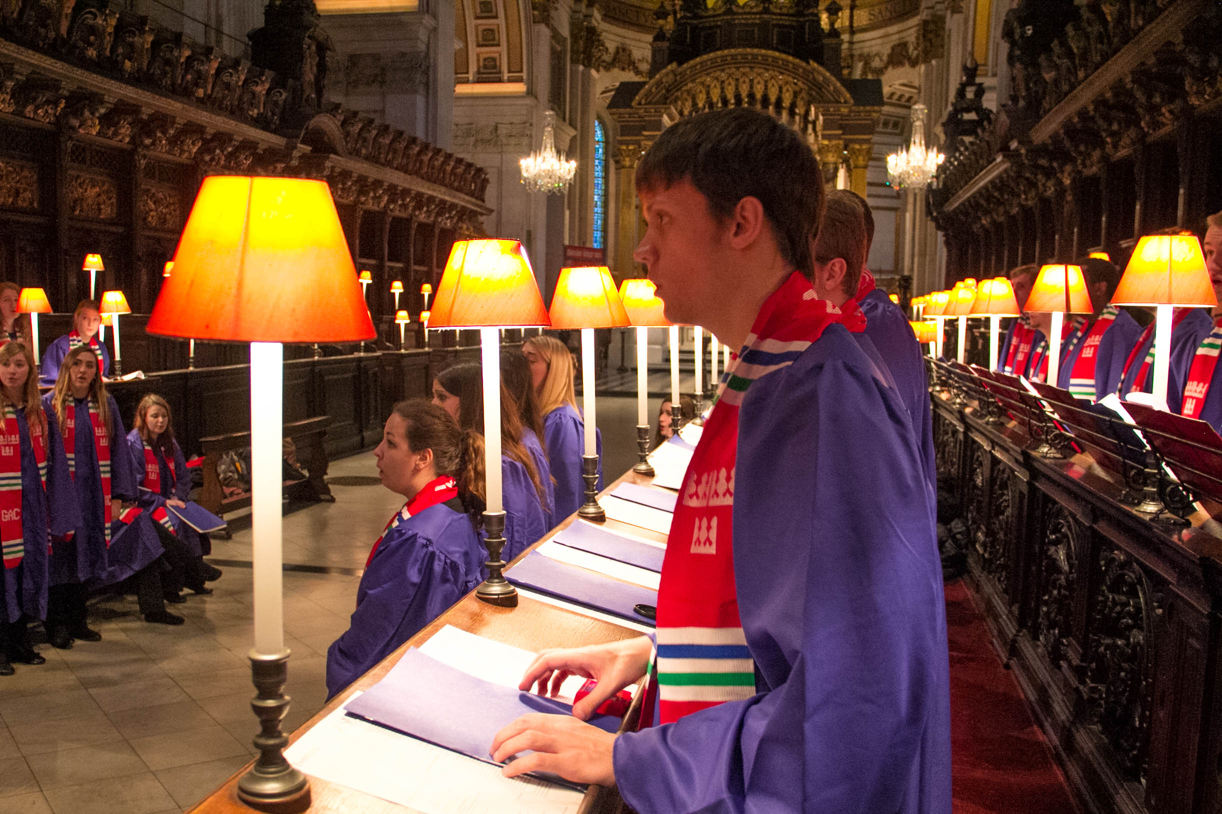 After strolling about the Westminster cloisters, the group moved on to St. Paul’s Cathedral, a glorious, elegant building that has dominated the London skyline since the 17th century. The choir had the incredible opportunity to participate in a traditional Anglican evensong in St. Paul’s. This service was an illuminating cultural, religious, and musical experience, including Anglican ritual, prayer, and chant singing. Seated in traditional “quire” seating with the choir divided in half and facing inwards towards the other section, we sang familiar Christian prayers enhanced by a few well-wishes for the Queen and kingdom.